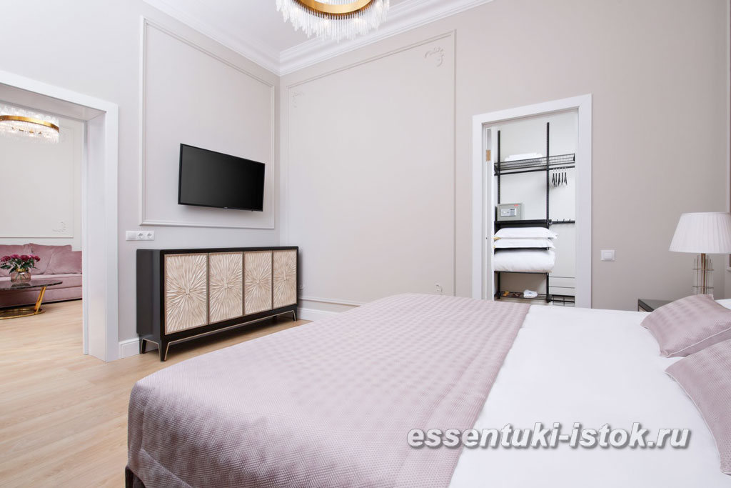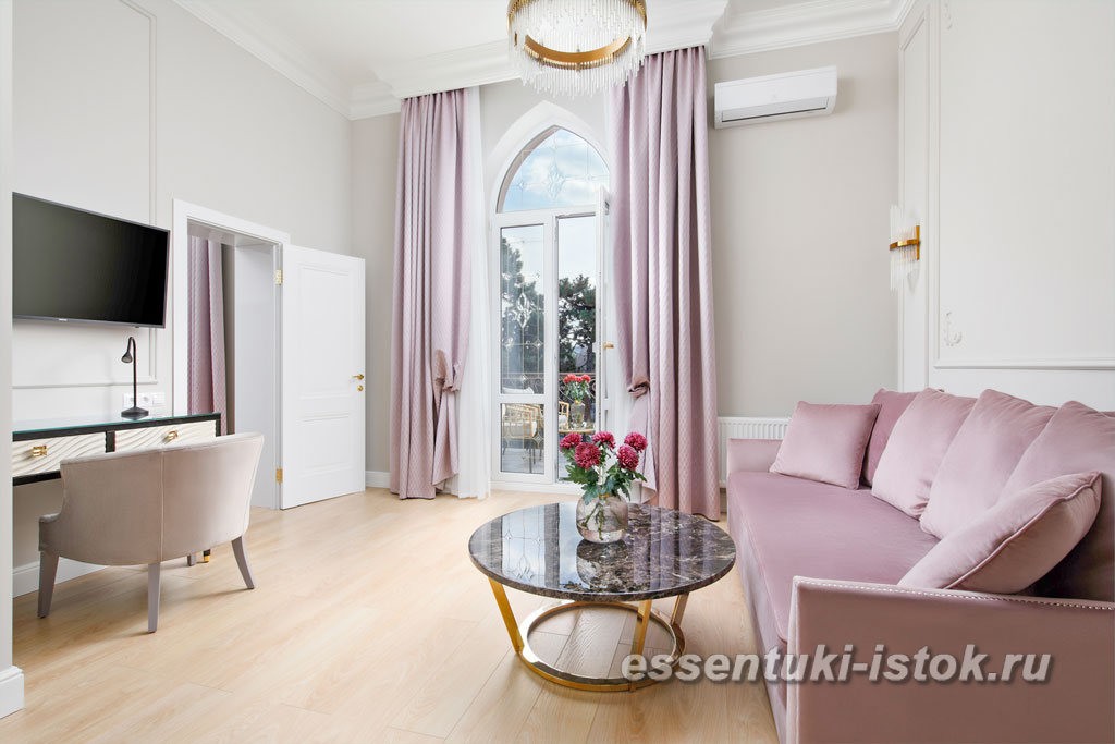 Великолепный и просторный двухкомнатный номер с большой двуспальной кроватью, гостиной, ванной комнатой и гардеробом. Помимо фирменного стиля в номере Вас порадует балкон, что добавит еще большего комфорта для Вашего отдыха.